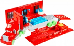 Upoznajte kamion Maniek iz filma Auta u izdanju Glow Racers, koji donosi dvostruku dozu zabave: robusni je guralica-transporter i istovremeno rasklopivi igraći set s detaljnim servisnim centrom. Otvorite prikolicu, otkrijte figuricu Guida spremnog za zamjenu guma i krenite u novu trkaću misiju.