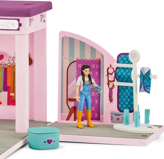 Sklopivi konjički salon iz kolekcije Schleich HORSE CLUB Sofia's Beauties idealan je za sve ljubitelje konja. Nudi prekrasne deke i dodatke u više boja, pa će svaki konj doći na svoje. Znate li da grivu i rep možete ne samo češljati i uređivati, već ih i lako mijenjati? Zahvaljujući tome, Sofia i njezina kobila ne moraju ostati pri jednoj frizuri. Savršen je za bilo koje fotografsko snimanje, čak i ako je samo u dvorištu. Set ćete lako sklopiti, a za putovanje ponovno rasklopiti.