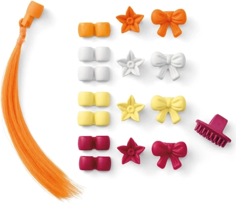S ovim prekrasnim ukosnicama briga o konju dvostruko je zabavnija! Mali češljić/četkica daje sjaj svakoj grivi i repu! A teško je odabrati dodatke za kosu za svog konja... Perlice, cvjetovi i mašne izgledaju sjajno. Trebaju li biti šareni ili radije suptilni? Na raspolaganju je čak i dodatni pramen narančaste kose koji je posebno elegantan. Konj izgleda toliko efektno da ćete ga morati povesti u šetnju kako biste se pohvalili!