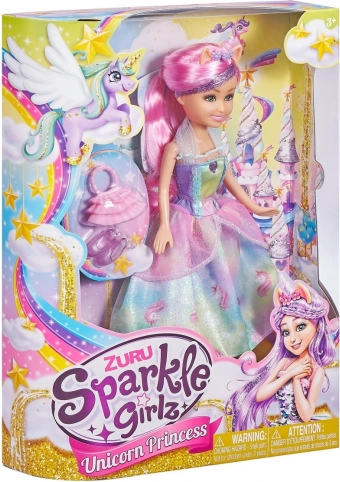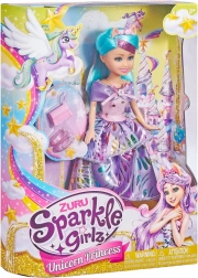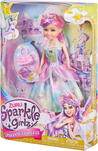 Lutka SPARKLE GIRLZ Jednorog princeza donosi bajku u dječje ruke. Zahvaljujući svjetlucavim haljinama s motivima jednoroga, izražajnim bojama i dugoj kosi stvorena je za pričanje priča, igru princeza i magične pustolovine. Idealna za male zaljubljenike u maštu i modne dodatke.