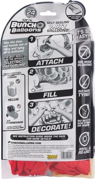 Zaboravite na dugotrajno puhanje i vezanje. S balonima ZURU Bunch O Balloons dobit ćete brzu i čistu dekoraciju bez suvišnog napora. Nakon napuhavanja baloni se automatski zatvaraju i zadržavaju oblik, pa možete u nekoliko sekundi pripremiti dojmljive ukrase.
