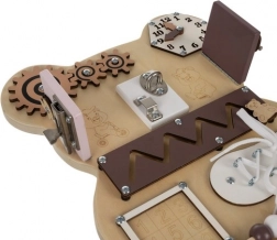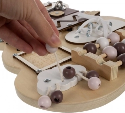 Ploča nudi razne aktivnosti koje pomažu u razvoju fine motorike i kognitivnih sposobnosti djece.