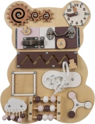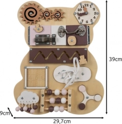 Drvena osjetilna ploča od Kruzzela savršeno je dizajnirana za poticanje razvoja djece. Medvjeđi oblik i mnoštvo interaktivnih elemenata nude mnogo sati zabave i učenja. Ova ploča nije samo zabavna već i edukativna, što je čini neophodnim alatom za razvoj djece.