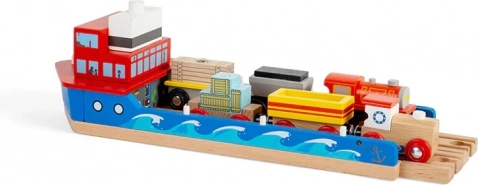 Dodatak koji oživljava svaku drvenu željezničku prugu. Plavo plovilo s crvenim kormilarnicom, oslikanim valovima i prirodnom drvenom palubom savršeno se uklapa u obalne i gusarske setove. Zahvaljujući preklopnoj rampi vlakići mogu glatko ulaziti na palubu i silaziti s nje, što potiče maštu, finu motoriku i koordinaciju.