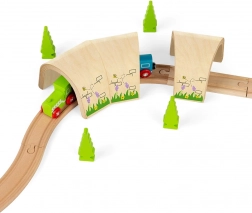 Tunel pristaje na standardne drvene tračnice i bez poteškoća ga kombinirate s omiljenim setovima i markama.