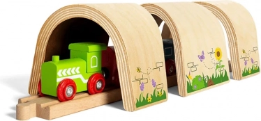Ovaj univerzalni tunel za drvene vlakove lako će unaprijediti svaku prugu. Možete ga koristiti kao jednostavan ravni prolaz s okretanjem od 180° ili kombinirati više komada i stvoriti fluidan luk – idealno i za duge lukovite tračnice. Zahvaljujući glatkoj površini i zaobljenim rubovima siguran je i ugodan na dodir.