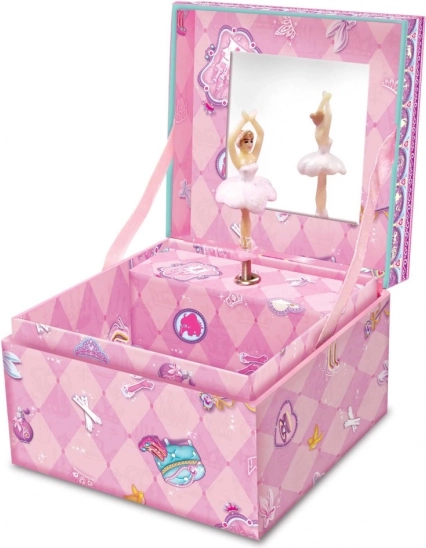 Spremite svoje dragocjenosti u škrinjicu za nakit s prekrasnim dizajnom. Nakon navijanja i otvaranja, škrinjica svira glazbu. Sjajan dodatak za male princeze i šminkerice. Proizvod je izrađen od čvrstog, izdržljivog kartona s glatkom završnom obradom. Pogodno za djecu od 6 godina.