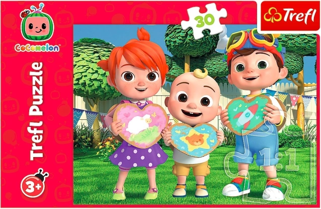 Otkrijte radost slaganja s puzzlama Trefl Cocomelon: Igrajmo se zajedno. Ovaj šareni motiv popularne dječje serije razveselit će male obožavatelje te poticati finu motoriku, koncentraciju i strpljenje. Zahvaljujući 30 većim dijelovima, puzzle su idealne za početnike.