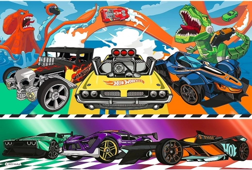Sastavite akcijski svijet HOT WHEELS s puzzleom od 100 dijelova. Nakon slaganja nastaje slika dimenzija 410 × 275 mm. Dijelovi su izrađeni od kvalitetnih materijala, sa specijalnim kalandriranim papirom za bolji odsjaj svjetla i ugodno slaganje. Proizvedeno u Poljskoj od ekoloških materijala – idealan poklon za male i velike ljubitelje brzih automobila.