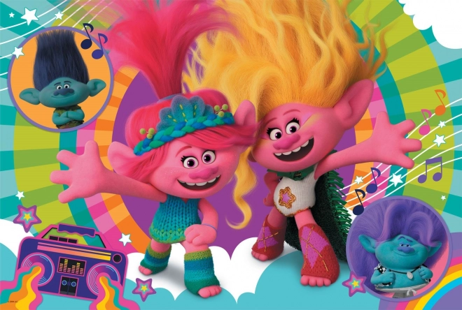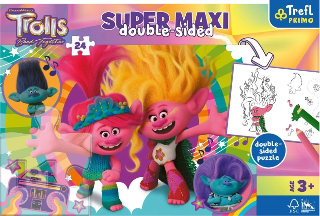 Ovaj 3-u-1 set brenda TREFL donosi djeci puno radosti i stvaralaštva. Na jednoj strani nalazi se šareni motiv iz filma Trolovi 3, a na drugoj crno-bijela bojanka i zabavna aktivnost za igru. Veliki komadi prilagođeni su dječjim ručicama te potiču strpljenje i koncentraciju.