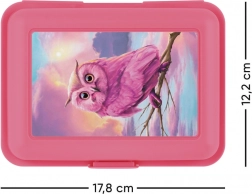 BAAGL kutija za užinu Sova idealna je za djecu i odrasle koji traže praktičnu i lijepo dizajniranu kutiju za hranu. Ova ružičasta plastična kutija, koja ne zauzima mnogo prostora, lako se zatvara pomoću jedne kopče i omogućuje prikladno razdvajanje namirnica zahvaljujući unutarnjoj pregradnoj ploči.