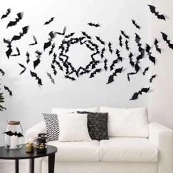 Set sadrži 3 šišmiša s rasponom krila 47, 37 i 31 cm koji vašem interijeru daju izražajan “wow” efekt. Sjajna crna izvedba i 3D oblikovanje omogućuju stvaranje dramatičnih instalacija na zidu, prozoru ili vratima.
