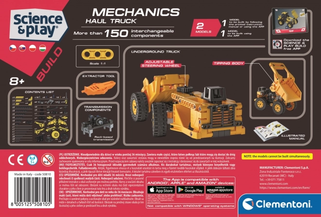 Sastavite vlastite rudarske strojeve i otkrijte svijet mehanike s kreativnim setom Clementoni Science & Play. Ovaj set sadrži 150+ dijelova od kojih možete složiti 2 funkcionalna modela (ne istodobno). Zahvaljujući preciznim spojnicama, zupčastim prijenosima i robusnim kotačima razvijaju se vještina ruku, tehničko razmišljanje i koncentracija. U pakiranju je ilustrirana uputa te interaktivne 3D upute u aplikaciji. Idealna STEM igračka za male inženjere.