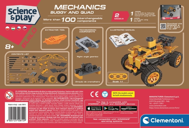 Ovaj znanstveni i kreativni set donosi više od 100 kvalitetnih komponenti za izradu dvaju funkcionalnih modela – buggyja i četverokotača (ne mogu se graditi istovremeno). Dijelovi su dizajnirani za čvrsto i precizno spajanje, pa je konstrukcija stabilna i izdržljiva čak i pri igri na zahtjevnijem terenu.