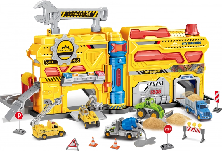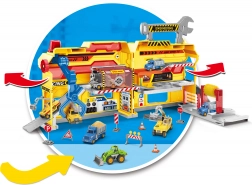 Zabavna i lako prijenosna građevinska stanica za male graditelje nudi svjetlosne i zvučne efekte, dva automobila s slobodnim kretanjem i bogatu opremu. U pakiranju ćete pronaći znakove, naljepnice i ilustrirani priručnik za jednostavno sastavljanje. Idealan poklon za razvoj mašte i motorike.