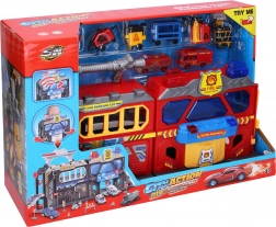 Ova detaljno izrađena vatrogasna postaja razveselit će male spasioce brojnim funkcijama i dodacima. Zahvaljujući svjetlosnim i zvučnim efektima djeca će uživati u autentičnom doživljaju intervencije, a zahvaljujući jednostavnoj aktivaciji gumbom upravljanje je lako i za najmlađe. U kompletu su dva vozila s kotačima slobodnog hoda i bogat set dodataka koji potiču maštu i kreativnu igru.