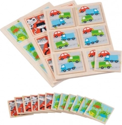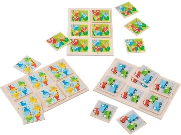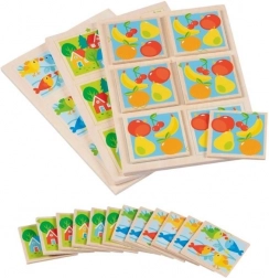 Zahvaljujući kvalitetnom drvu i živim bojama, igra je izdržljiva i vizualno privlačna. Tri podložne ploče s različitim motivima donose raznolikost i dodatnu razinu izazova. Igra potiče koncentraciju, logičko razmišljanje i finu motoriku.