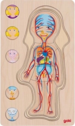 Želite razveseliti svoje dijete nečim posebnim? Edukativne drvene puzzle Goki idealan su izbor za male istraživače. Ova igračka ne samo da potiče znatiželju, već nudi i interaktivan način upoznavanja s anatomijom ljudskog tijela. Puzzle su izrađene s puno detalja, a njihovih pet slojeva otkriva tajne kostura, mišića i organa.