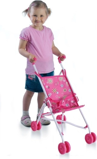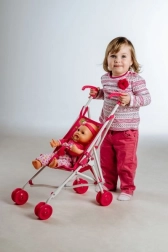 Ova moderna kolica za lutke u „kišobran“ izvedbi nude stabilan metalni okvir u kombinaciji s laganim plastičnim elementima. Lako se sklapaju, pa se bez problema prenose, odlažu i nose na put. Sjedište s cvjetnim uzorkom daje igri šarm i potiče na duge šetnje s omiljenom lutkom.