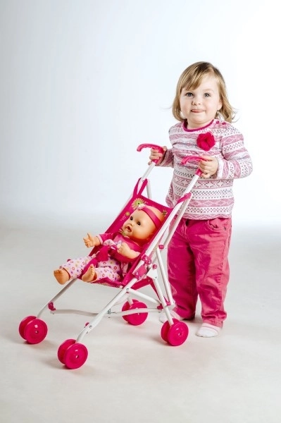 Za sigurnost lutke kolica su opremljena sigurnosnim pojasom. Zahvaljujući niskoj težini i kompaktnim mjerama 27 × 55 × 52 cm, djeca njima lako manevriraju. Igra s kolicima potiče razvoj mašte, socijalnih vještina i fine motorike.