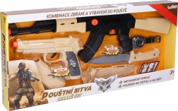 Dječji akcijski set za male vojnike sadrži automatsku pušku 52 cm, pištolj s futrolom 20 cm, nož s futrolom 25 cm i sat. Oružje pri pritisku na okidač proizvodi realistične akustične zvukove bez potrebe za baterijama, a automatska puška se jednostavno ručno repetira polugom na lijevoj strani. Odličan set za tematske vojničke igre s hrvatskim pakiranjem.