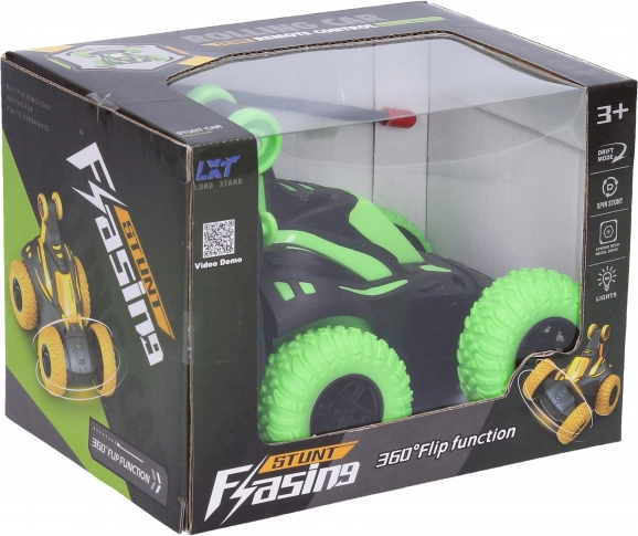 Kompaktni RC auto na daljinsko upravljanje veličine 12 cm nudi zabavu za male i velike. Ima rotirajući prednji dio oko svoje osi, izražene svjetlosne efekte i pouzdano upravljanje na frekvenciji 27 MHz. Jednostavno uključivanje putem prekidača ON/OFF na donjoj strani. Dostupan u 2 varijante boja – žutoj i zelenoj.