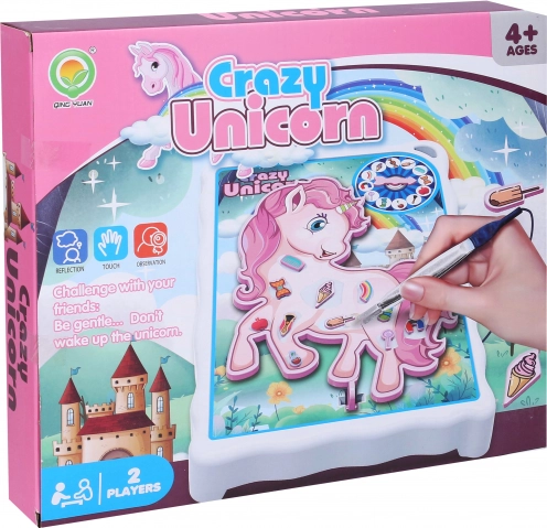 Zabavna vibracijska igra Jednorog s pincetom za 1–2 igrača. Sadrži rulet, 12 predmeta i naljepnice. Trenirа finu motoriku. Na 3x AA baterije.