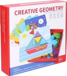 Kreativna mozaika s geometrijskim oblicima za djecu potiče finu motoriku, logičko razmišljanje i kreativnost. Pakiranje sadrži podlogu 25 × 25 cm, 22 oblika i 12 predložaka za lako slaganje slika.