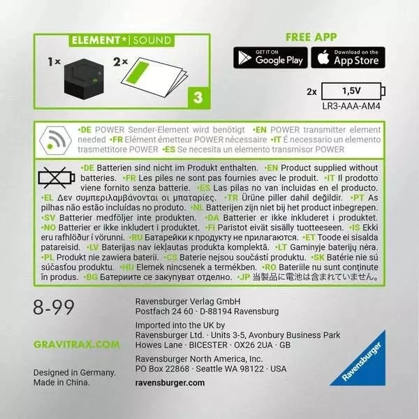 Proširite svoju stazu za kuglice GRAVITRAX modulom Power Sound i dodajte joj impresivne zvučne efekte. Nakon primitka signala pokreće se akcijski zvuk i možete prebacivati svjetove zvukova – od džungle do svemira. Jednim gumbom postavite i atmosfersku glazbu u pozadini. Modul potiče kreativnost, interes za fiziku, prostornu geometriju i gravitaciju te je izvrstan za djecu i odrasle.