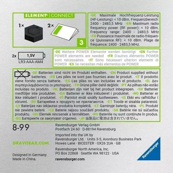 - Kompatibilnost – radi s ostalim elementima iz serije GraviTrax; za korištenje su potrebni dodatni Power elementi.