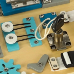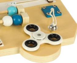 Igra s pločom razvija koordinaciju oko–ruka, trenira koncentraciju i jača svakodnevne vještine – od zakopčavanja patenta do rada s ključem i zasunom. Zahvaljujući izdržljivim materijalima, ploča je odličan izbor za kućnu upotrebu i igraonice.