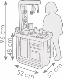 Dostupna je u nježnim pastelnim nijansama koje harmonično pristaju svakom interijeru. Roditelje i djecu zasigurno će obradovati bogata oprema kuhinje, koja uključuje štednjak s 2 plamenika, pećnicu s otvorivim vratima, hladnjak, sudoper s slavinom i aparat za kavu. Elektronski zvučni modul naglašava stvarnost igre zvukovima kuhanja, što djeci donosi još veće užitke.