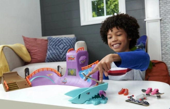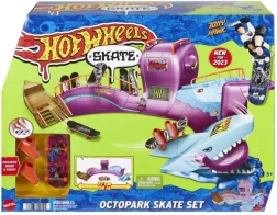 Hot Wheels Skate Octopark je moderan set za fingerboarding. Spustite se s divovske glave hobotnice i doživite epicku vožnju, punu rampi, stepenica i iznenađenja u obliku morskog psa!