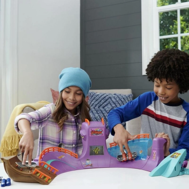 - Uživajte u nebrojenim trikovima s Hot Wheels Skate Octopark, tematskim setom s hobotnicom, koji nudi mnoge igraće površine.
