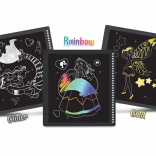 Otkrijte čaroliju boja s Barbie u zadivljujućem fantasy stilu uz zdrapavajući skicir. Upotrijebite priloženo pero kako biste otkrili živopisne boje duge skrivene ispod crne površine.
