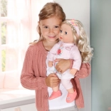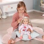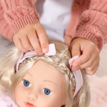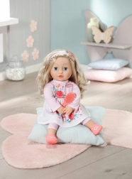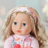 Lutka Sophia iz kolekcije Baby Annabell ima prekrasnu plavu kosu koju možete stalno stilizirati. Nosi modni ružičasti obruč s ukrasom leptira koji se odlično slaže s njezinom ružičastom haljinicom s cvjetnim uzorcima. Dugu kosu voli imati raspuštenu, što lutki daje prirodan izgled. Sa svojim realističnim licem i detaljnom odjećom djeci pruža izvrsnu priliku za maštovitu igru.