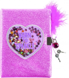 Dnevnik sa sjajnim i čvrstim koricama. Sadrži 160 obojenih stranica, pero s perom i lokot s ključevima. Primjereno za djecu od 6 godina.