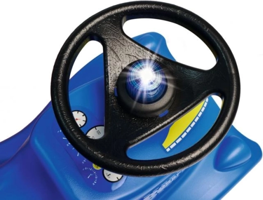 Robusna guralica s ergonomskim sjedalom u plavoj boji i policijskim naljepnicama na 10 jezika. Nudi elektronički svjetlosni i zvučni policijski modul, mehaničku trubu i stabilnu konstrukciju za sigurnu vožnju djece.