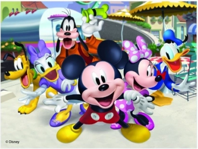 - 12 drvenih kocaka s licenciranim motivima MICKEYJA i njegovih prijatelja