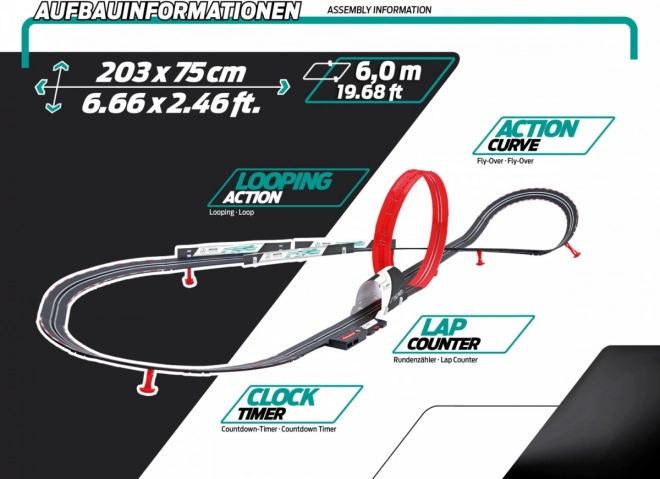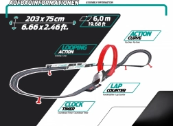 Staza se lako sastavlja, stabilna je i zahvaljujući izdržljivoj izvedbi podnosi i intenzivno utrkivanje. Odličan izbor za prvi korak u slot racingu: kompaktne dimenzije, intuitivno upravljanje i bogata oprema za trenutnu zabavu.
