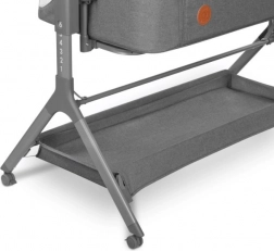 Za zdrav san opremljen je kvalitetnim pjenastim madracem T25 idealne tvrdoće i elastičnosti, čija se navlaka s patentnim zatvaračem lako skida i pere. Velike mrežaste stranice osiguravaju maksimalnu cirkulaciju zraka i stalan nadzor nad djetetom. Podešavanje nagiba madraca u 2 razine pomaže kod prehlade ili bljuckanja. Četiri gumena kotačića omogućuju tihi i nježni prijenos po stanu, a velika donja košara drži sve potrepštine pri ruci.
