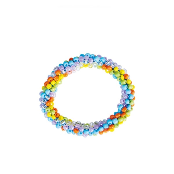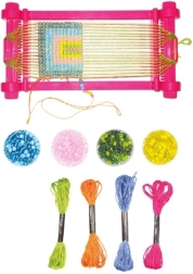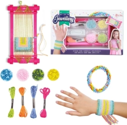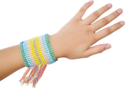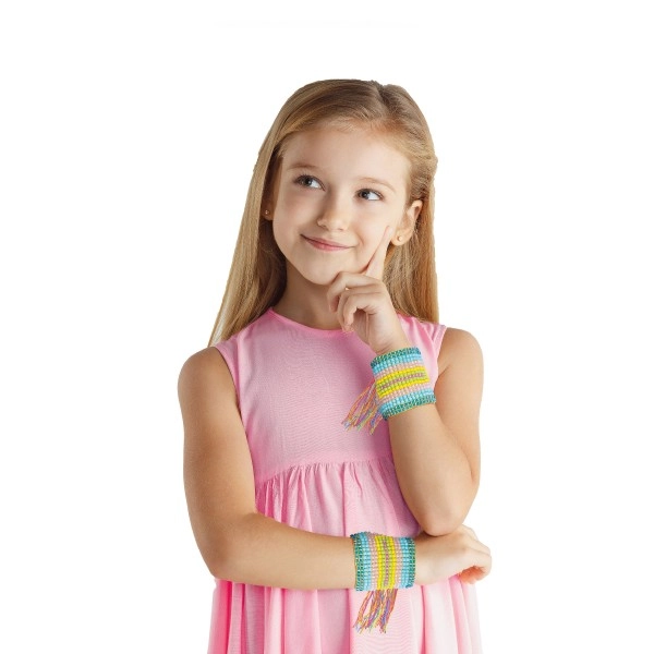 Ispleti svoju narukvicu koja će odgovarati tvojoj odjeći. Sjajna zabava za slobodno vrijeme. Izradi doista originalan nakit kakav nitko drugi neće imati! Set sadrži 4 šarene pamučne niti, 4 boje perlica i tkalački stalak. Dimenzije proizvoda: 25 x 15 x 3 cm. Pogodno za djecu od 8 godina.