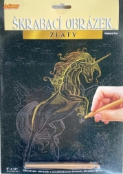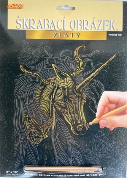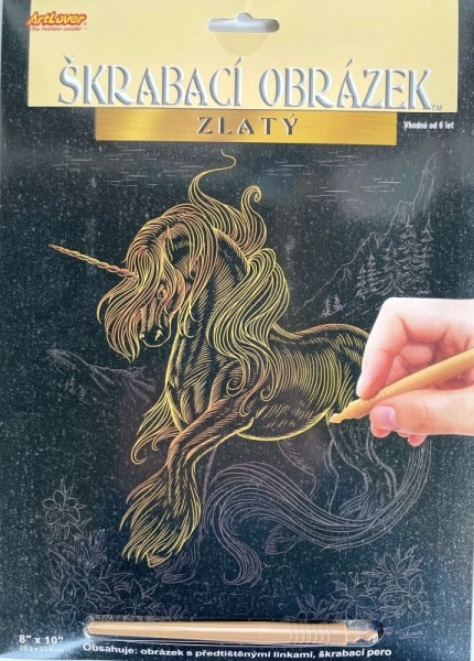 Otkrijte ljepotu i čaroliju jednoroga uz ovu zlatnu strugalicu. Savršeno za sve ljubitelje jednoroga, ova slika omogućuje vam stvoriti prekrasno umjetničko djelo jednostavnim struganjem linija unaprijed otisnutog motiva pomoću priložene plastične olovke za struganje.