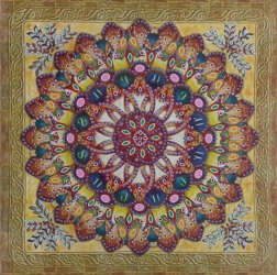 Dijamantno slikanje 7D podiže klasični 5D koncept na višu razinu: kamenčići imaju različite oblike, veličine i površinske uzorke te se lijepe samo na odabrane dijelove motiva. Zahvaljujući tome završna slika je izražajnija, blistavija i prostornija. Motiv zlatne mandale u dimenziji 30 × 30 cm odlično se uklapa u moderne interijere.