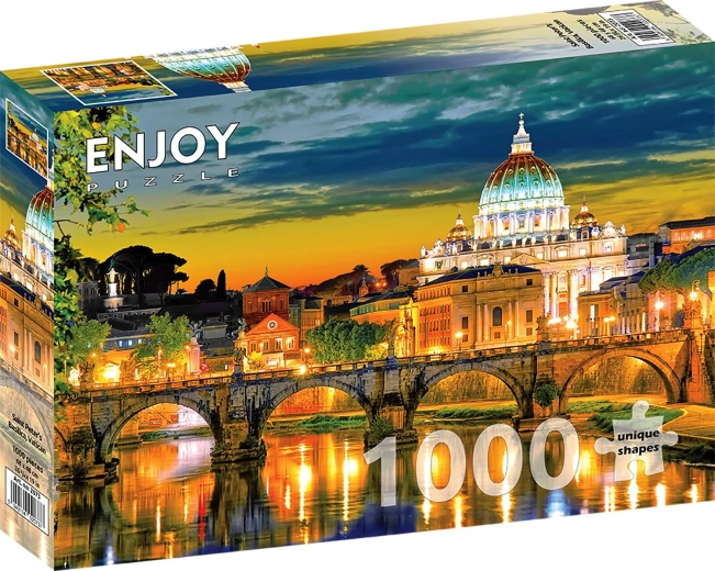 Uživajte u zabavi i opuštanju s ovim sjajnim puzzlama koje prikazuju baziliku svetog Petra u srcu Vatikana. Puzzle od 1000 dijelova nude odličan izazov za sve ljubitelje slagalica. Nakon slaganja, puzzle se odlikuju pažljivo izrađenim detaljima i živim bojama koje će odlično ukrasiti vaš interijer.