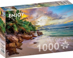 Uživajte u egzotičnoj atmosferi uz slagalicu koja prikazuje zlaćani zalazak sunca na Sejšelima. Slaganje 1000 dijelova nudi ugodan izazov, razvija strpljenje, koncentraciju i donosi opuštanje za cijelu obitelj.