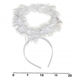 S ovim rajfom sa svetlačkom izgledat ćete kao pravi anđeo. Izrađen je od finog bijelog perja koje osigurava udobnost i lakoću nošenja. Svetlačka je učvršćena na bijelom elastičnom rajfu i diskretnom žicom osigurana da čvrsto drži. Savršeno za kostime ili tematske zabave: