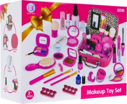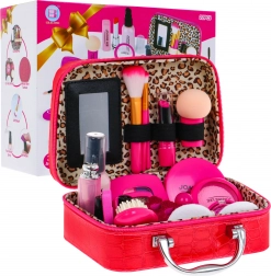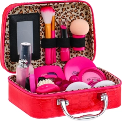 Set s torbicom napunjenom do vrha sigurnim dodacima za šminkanje igračka je za djecu od 3 godine. Elegantan i veliki kofer izrađen je od mekane eko kože. Ima udobnu ručku, četiri nožice na dnu i unutarnje zrcalo. Zatvara se patentnim zatvaračem. Cijeli set sastoji se od 22 stavke,sadrži kozmetiku poput sjenila, šljokica, ruževa, laka za nokte, maskare i mnogo toga. Kozmetika je atrapa, ali izgleda realistično, ne troši se i dječja koža bit će sigurna. Igra s kozmetikom razvija kreativno razmišljanje, vježba maštu, potiče koncentraciju.