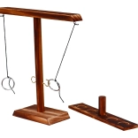 |   | Drvena, vještinska, zarazna igra za djecu od 5 godina, ali i za odrasle.Odlična za proslave, teambuilding događaje, godišnje odmore. Pruža sate zabave i poboljšava koordinaciju ruka-oko. Lako se sastavlja i rastavlja, pažljivo je izrađena i potpuno jedinstvena. Riječ je o tradicionalnom bacanju prstena tako da padne na kuku. Nakon svakog uspješnog bacanja potrebno je pomaknuti klin na postolju s prstenovima prema protivniku. Tko prvi dosegne protivnika, pobjeđuje. Napomena: u verziji za odrasle klin se može zamijeniti čašicom. Pravila igre: - postavite drveni klin u sredinu ploče, - pokušajte pogoditi metalni prsten tako da padne na kuku, - kad pogodite, pomaknite drveni klin za 1 polje prema protivniku, - kad ne pogodite, na potezu je protivnik, - tko prvi dosegne protivnika, pobjeđuje.  |