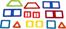 • Sadržaj seta: 9 magnetskih dijelova (3x pravokutnik, 2x trokut, 2x trapez, 2x kvadrat) + 4 plastična umetka (kvadrati s izrezima), uzorak modela i šareno poklon-pakiranje.
